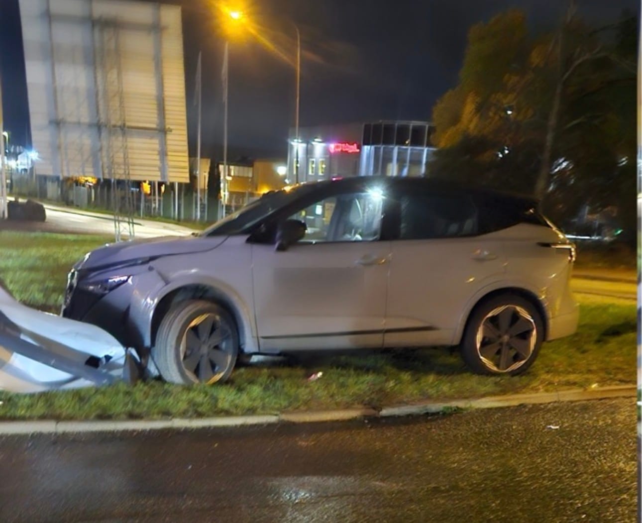 Ingen person ska ha skadats i samband med händelsen, men bilen fick bärgas från platsen. En anmälan om misstänkt rattfylleri och trafikbrott väntas upprättas.