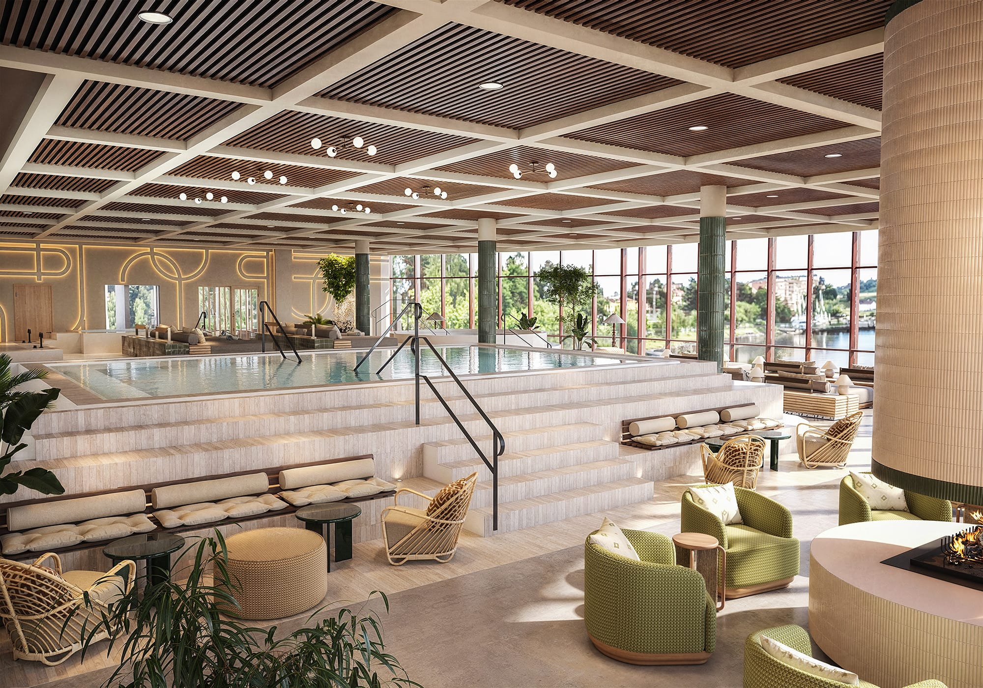 – Inspirationen kommer från klassiska pool clubs i Kalifornien och Palm Springs, men tolkad genom en skandinavisk designkänsla. Vi har arbetat med solblekta färger, naturliga material och mjuka arkitektoniska linjer för att skapa en miljö som känns både avslappnad och sofistikerad, en plats där spaet blir lika mycket en social scen som en plats för återhämtning, säger Johannes Tjernberg, inredningsarkitekt på Spik Studios.