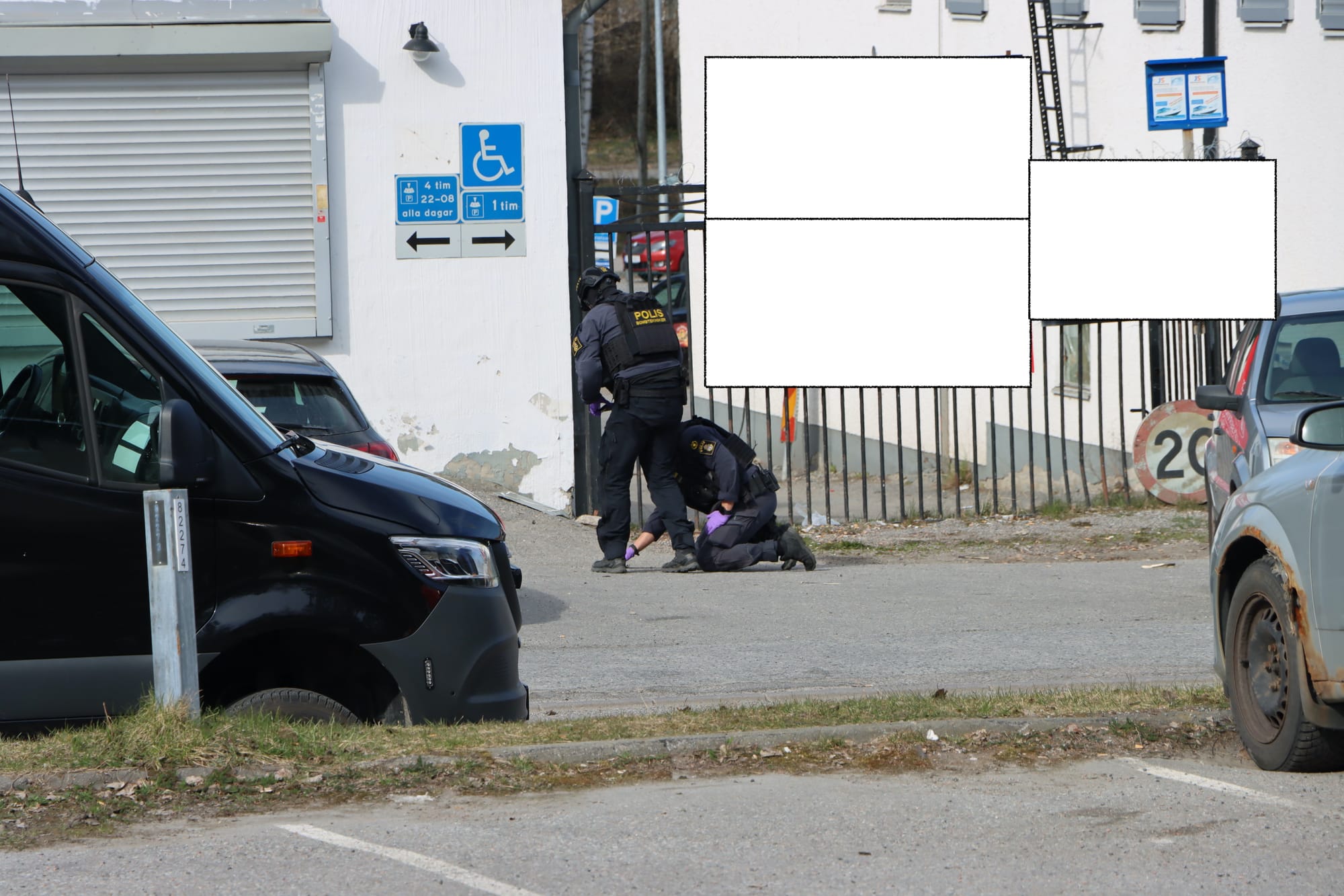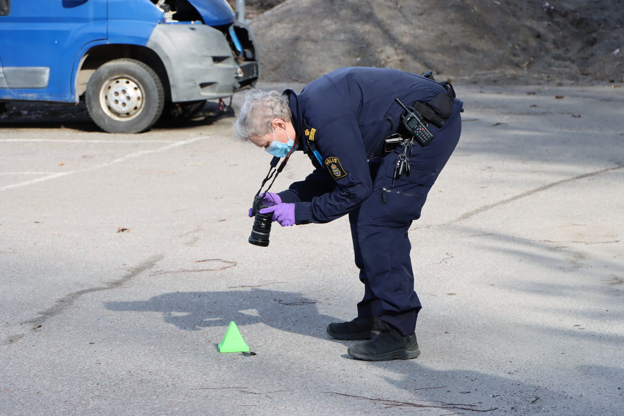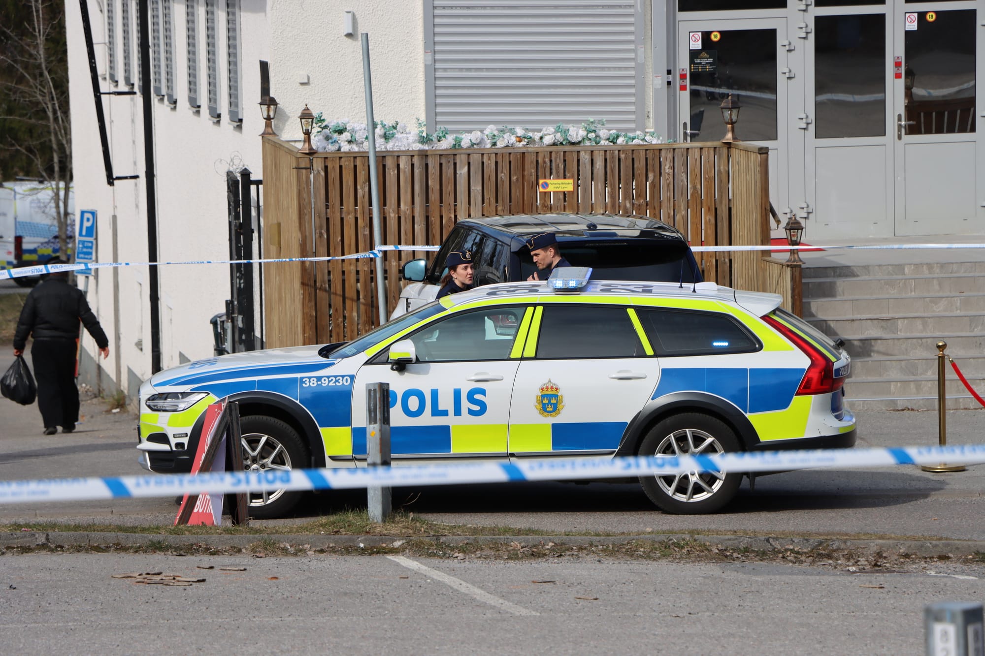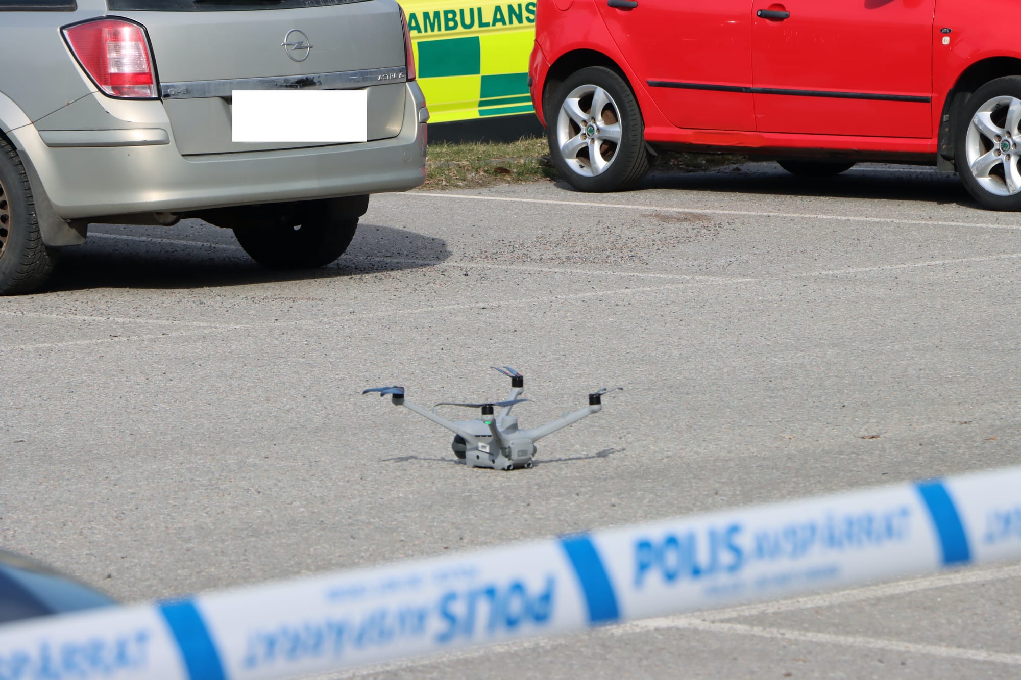 Flera polispatruller var på plats och satte upp avspärrningar i området. Polishelikoptern cirkulerade på låg höjd samtidigt som både polishund och specialsökhund arbetade på plats.