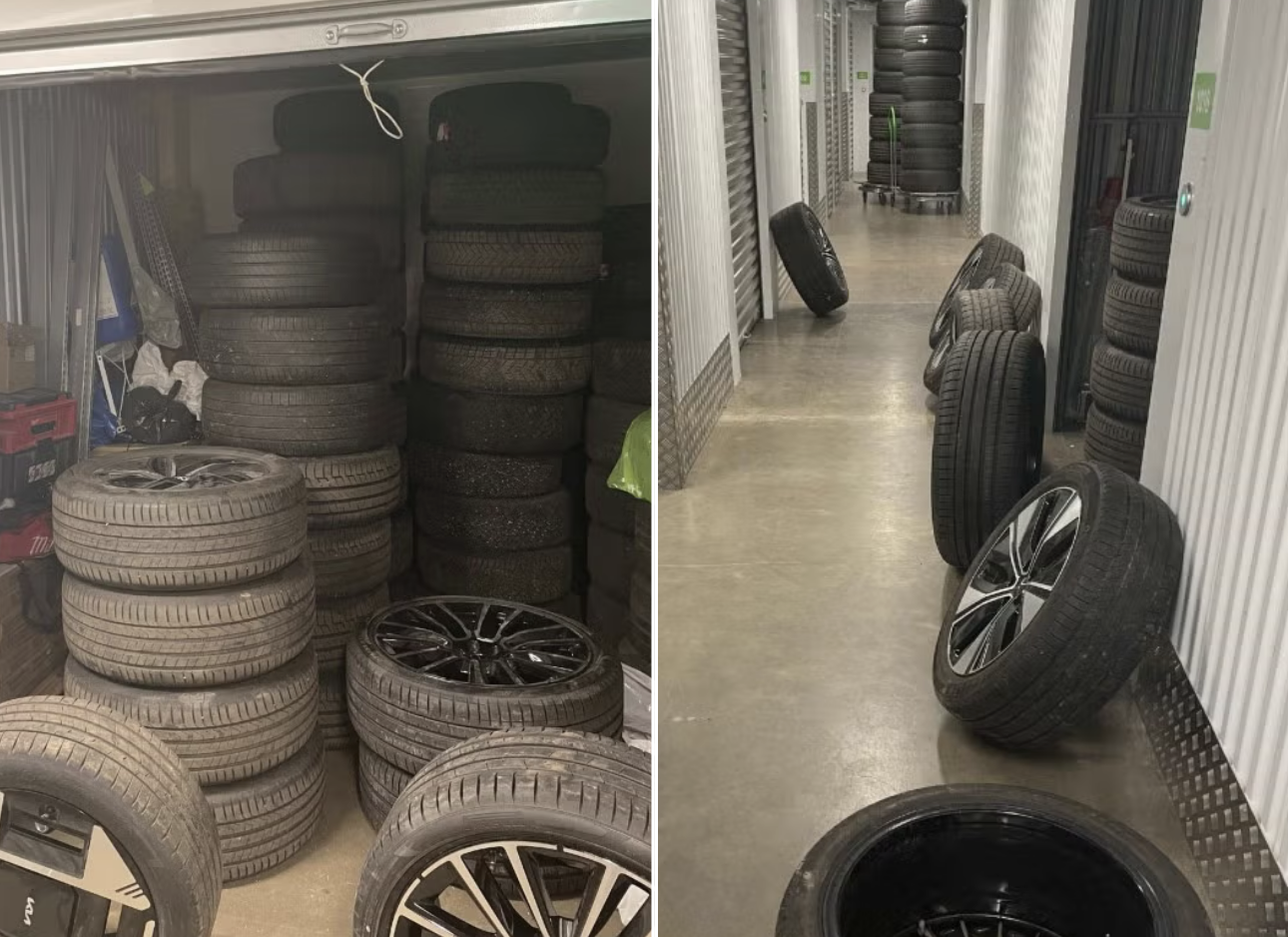 När polisen slog till mot ett förråd i Södertälje, inte långt från Astra Zeneca, möttes de av exklusiva bildäck staplade från golv till tak, även i korridorer och fordon på gården. Fyra personer greps direkt.