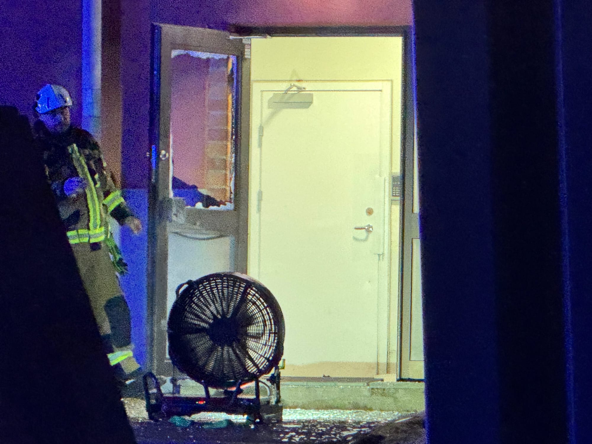 I samband med att en detonation inträffade vid porten fylldes trapphuset med rök. Vid 19.30 befann sig räddningstjänsten på plats för att vädra ut röken.