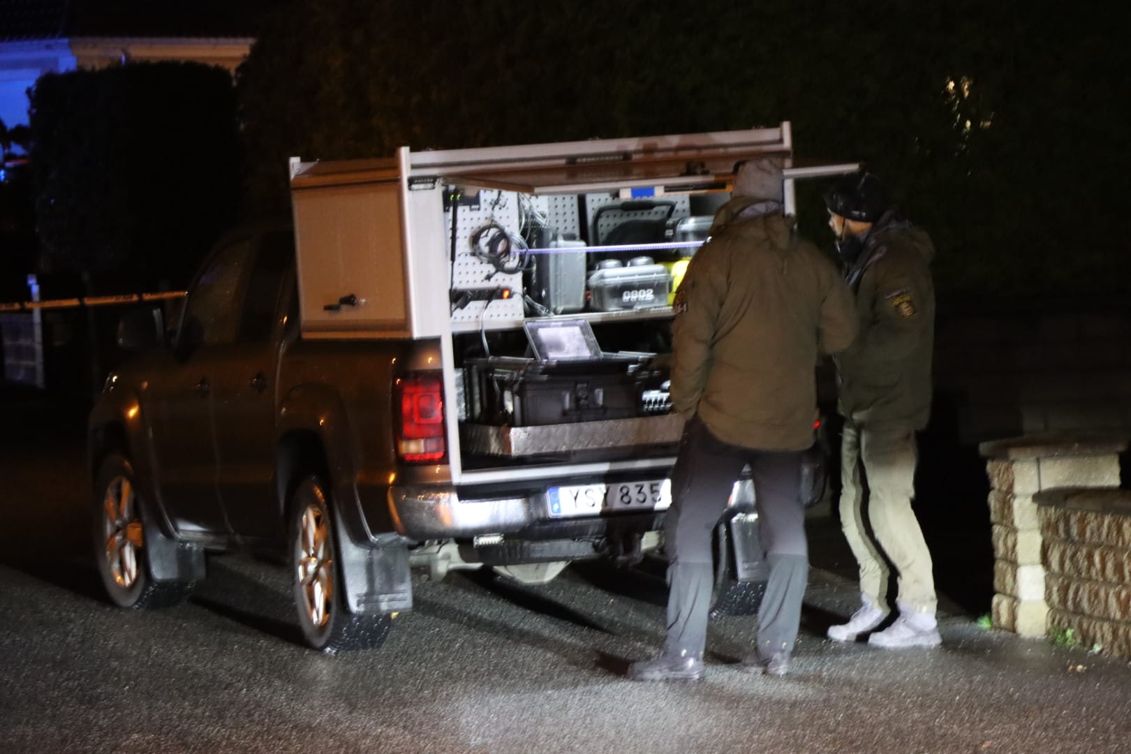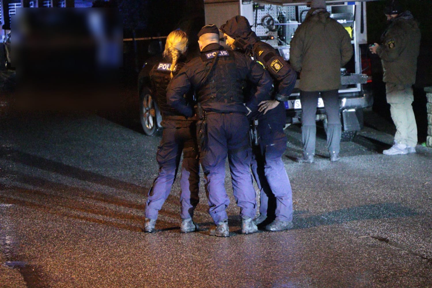 Polispatruller på plats genomför dörrknackning för att samla in mer information från boende i området. Samtidigt pågår en teknisk undersökning.