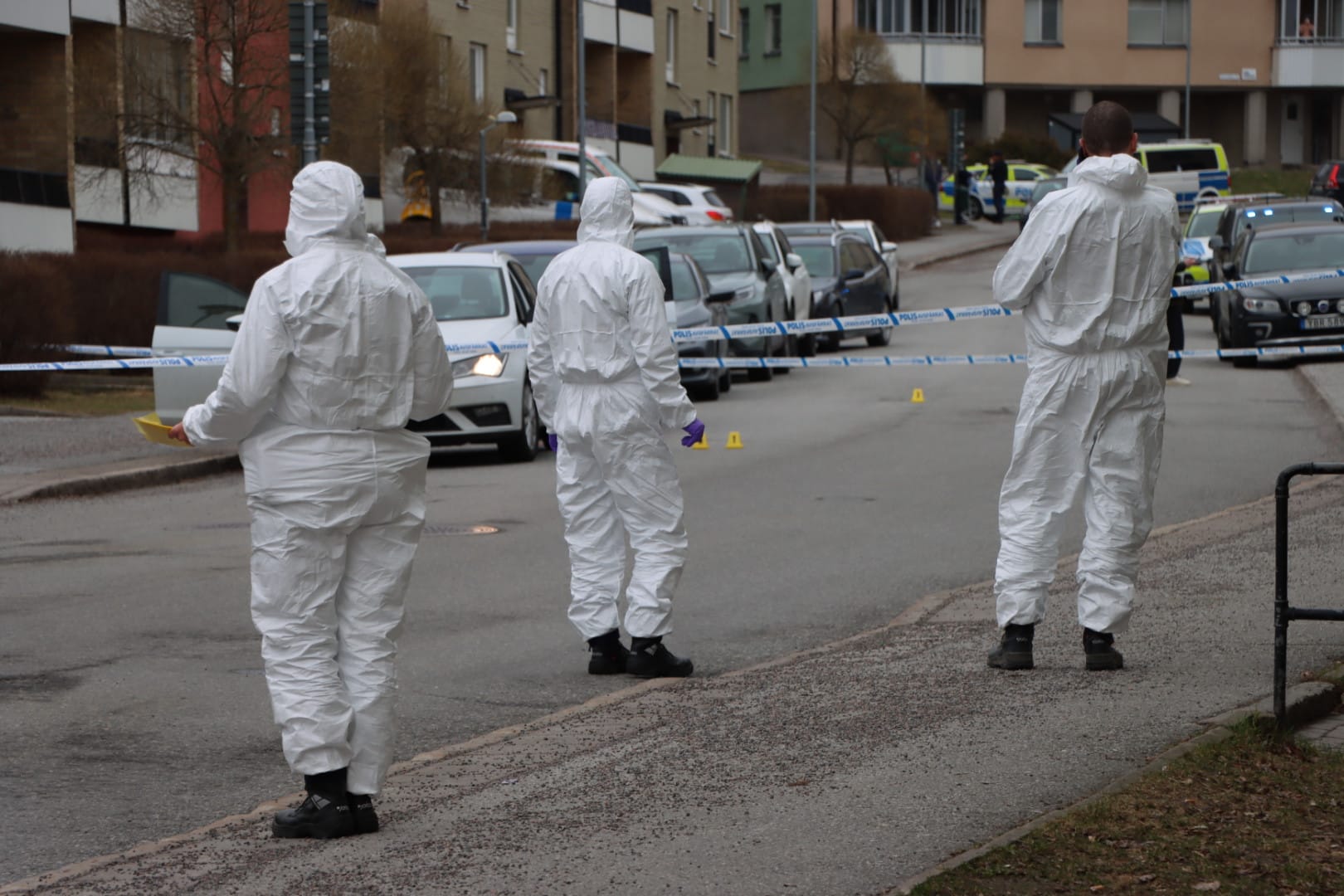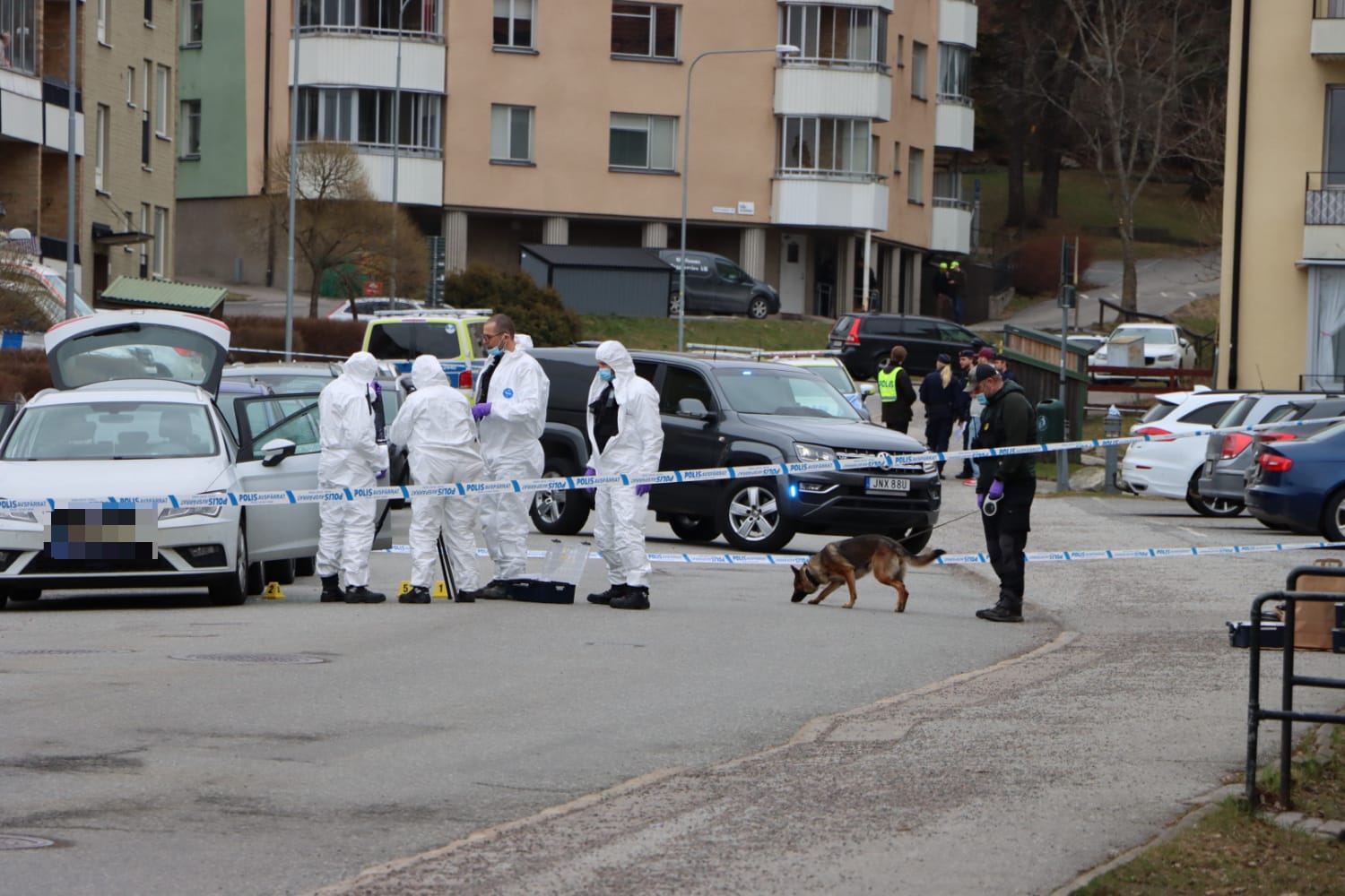 Under förmiddagen arbetade polisen intensivt med ärendet. Ett stort antal patruller deltog i sökandet efter gärningspersoner, samtidigt som brottsplatsen spärrades av. Kriminaltekniker genomförde undersökningar och polis knackade dörr i området för att samla in vittnesuppgifter.