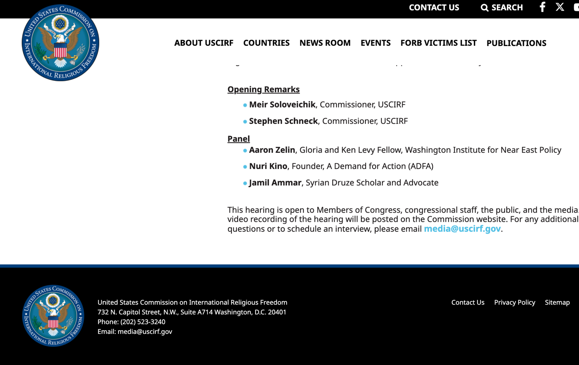 Under torsdagen den 13 november gav Nuri Kino, grundare av den internationella organisationen ADFA, sitt vittnesmål inför United States Commission on International Religious Freedom (USCIRF). Kommissionen har till uppdrag att ge råd till USA:s president och utrikesminister i frågor som rör global religionsfrihet, och hearingens innehåll ligger till grund för framtida amerikanska beslut och rekommendationer.