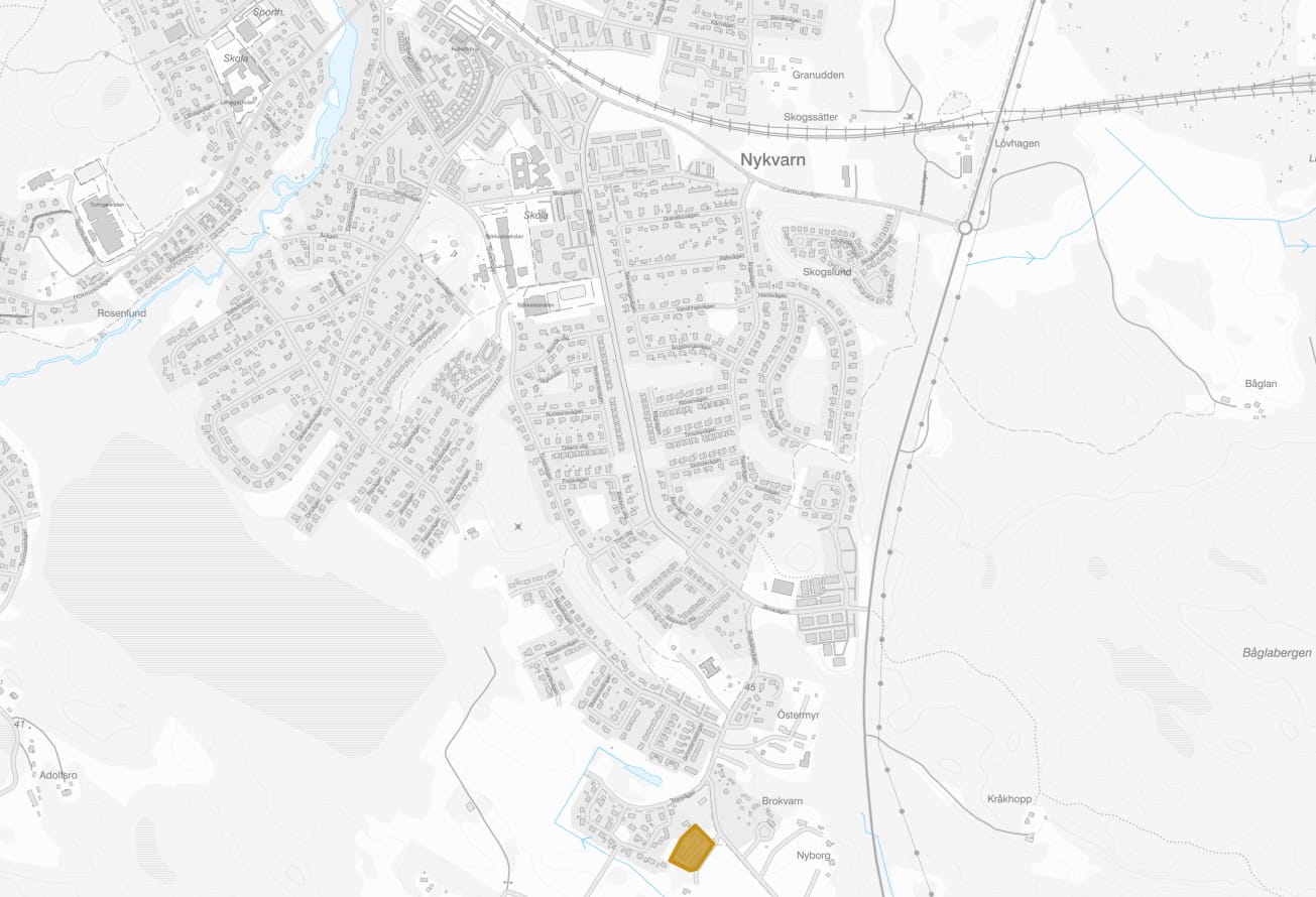 Nykvarns kommun har tagit fram ett förslag till detaljplan för området Brokvarn, beläget cirka två kilometer sydost om Nykvarns centrum. Planområdet omfattar cirka 0,5 hektar och gränsar till ett villaområde i väster, en markstensverksamhet i norr samt åkermark i söder och öster.