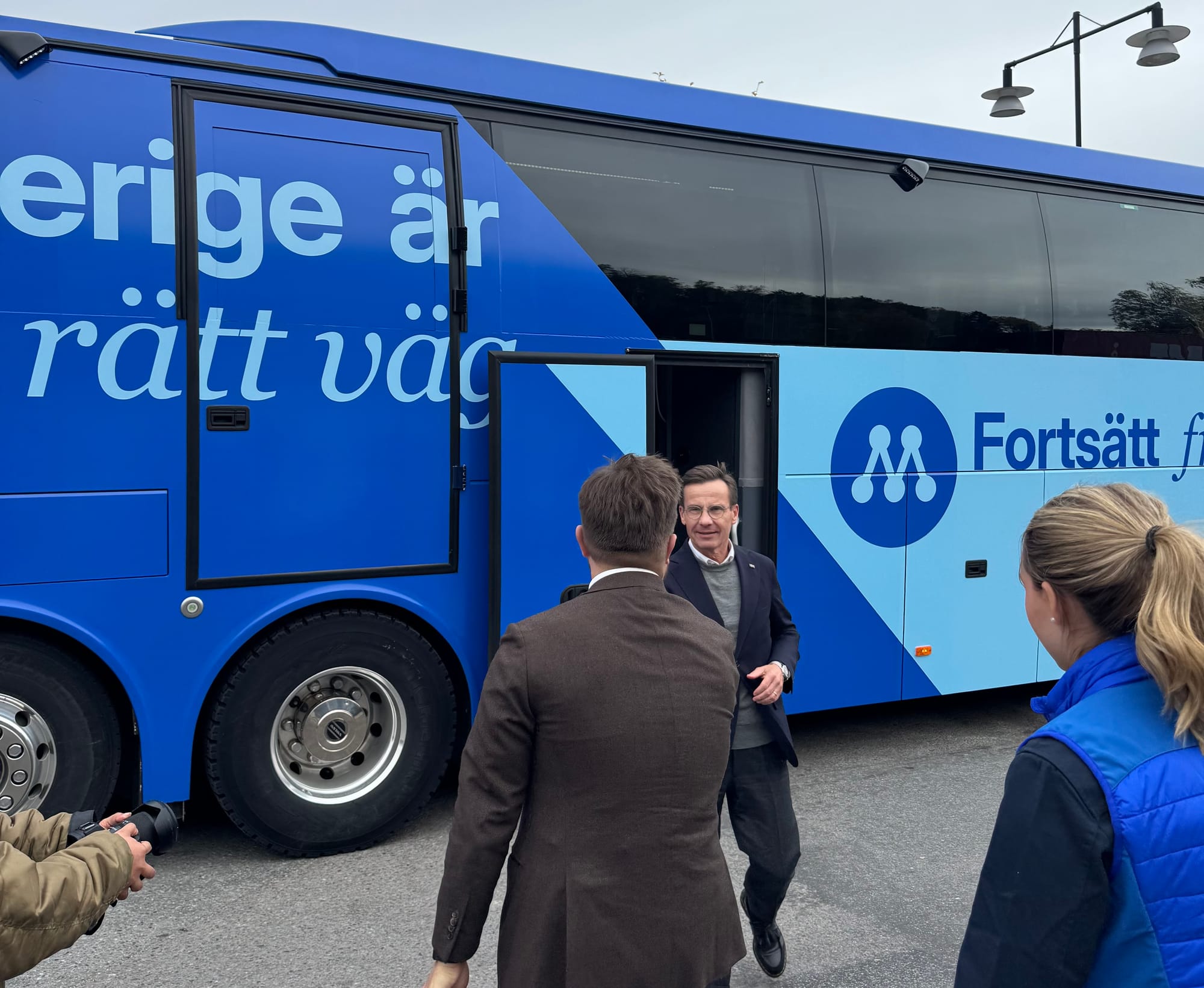Totalt väntas turnén omfatta över 500 kilometer och hundratals möten, innan bussen senare i veckan tas över av justitieminister Gunnar Strömmer (M).